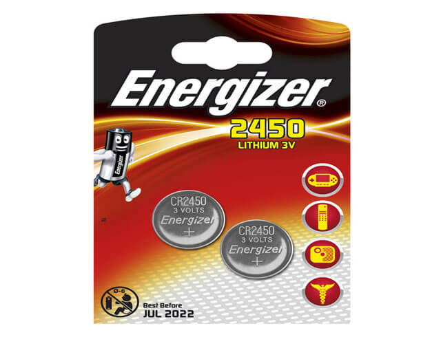 - Μπαταρία λιθίου (κουμπί) Energizer CR2450, σε blister με 2 μπαταρίες.