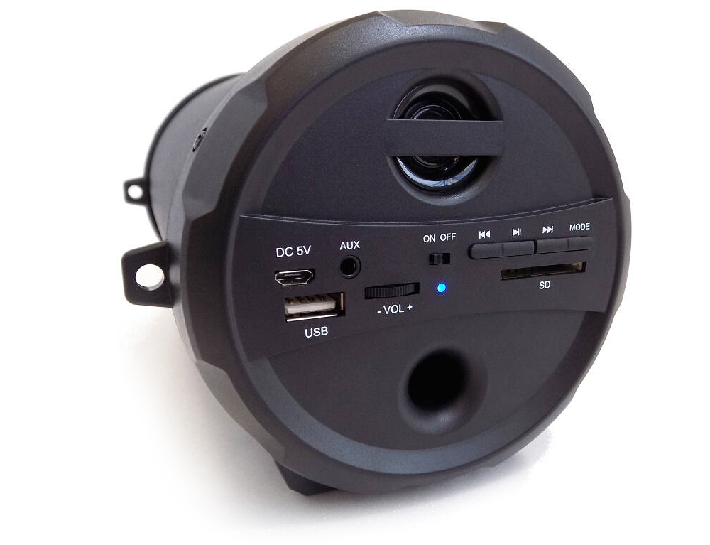 - Aux In: Λειτουργεί σαν εξωτερικό ηχείο συνδέοντάς το στο 3,5mm jack του υπολογιστή, κινητού, MP3, MP4 κ.α.