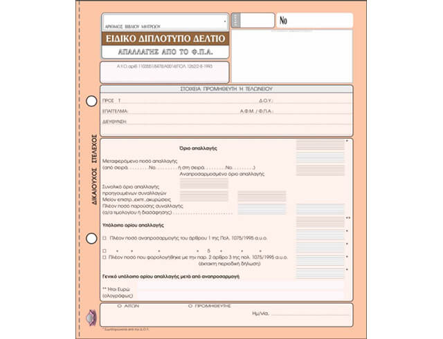 | Είδος | Δελτίο απαλλαγής ΦΠΑ |