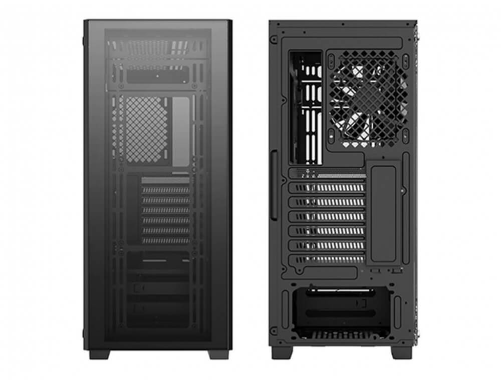Το πλαϊνό και το μπροστινό γυάλινο panel πάχους 4mm, προσφέρει μοναδική gaming εμφάνιση στο PC σας και άριστη θέα στο εσωτερικό του . Μεγάλες είσοδοι αέρα και στις δύο πλευρές του μπροστινού πανελ, με ομαλή έξοδο του αέρα από το πίσω και το επάνω μέρος, για βέλτιστη ροή αέρα και σωστή απαγωγή της θερμοκρασίας.