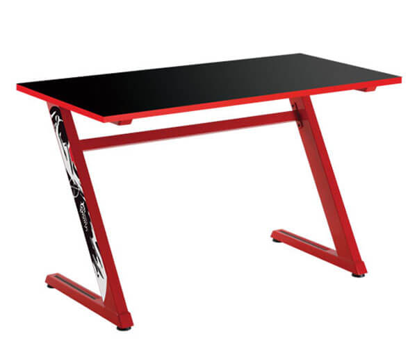 Gaming Z-Shaped Desk White Shark Frame With Desktop Board Black Red