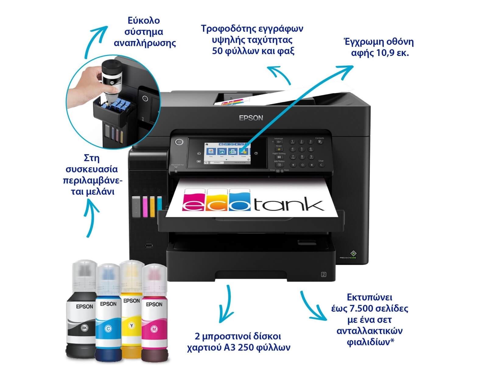 - Εξαιρετικά χαμηλό κόστος εκτύπωσης ανά σελίδα: Οικονομικό σύστημα δοχείων μελανιού