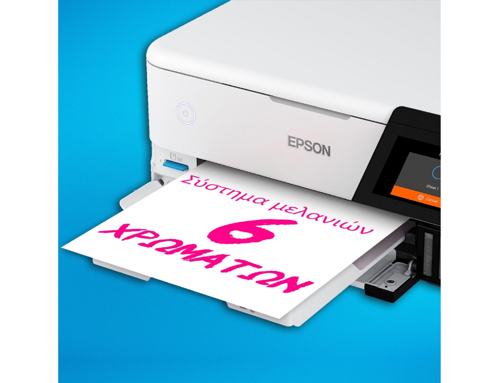 Με πλήρη δυνατότητα διασύνδεσης Wi-Fi, Wi-Fi Direct και Ethernet, μπορείτε να ενσωματώσετε εύκολα αυτόν τον εκτυπωτή στην υπάρχουσα οικιακή σας εγκατάσταση. Μπορείτε επίσης να εκτυπώσετε από κάρτες SD και μονάδες USB flash μέσω της έγχρωμης οθόνης αφής 10,9 εκ.