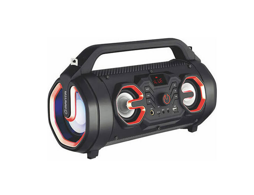 Το νέο φορητό ηχείο bluetooth Manta SPK206 είναι μια συσκευή που σε ένα συμπαγές περίβλημα κρύβει σχεδόν όλες τις λειτουργίες που βρίσκονται σε πολλά μεγαλύτερα ηχεία Manta Party Audio. Ενσωματωμένη επαναφορτιζόμενη μπαταρία, υψηλή ισχύς, λειτουργία καραόκε, Disco LED, τηλεχειριστήριο είναι μερικά μόνο από τα πλεονεκτήματα του ηχείου μας.