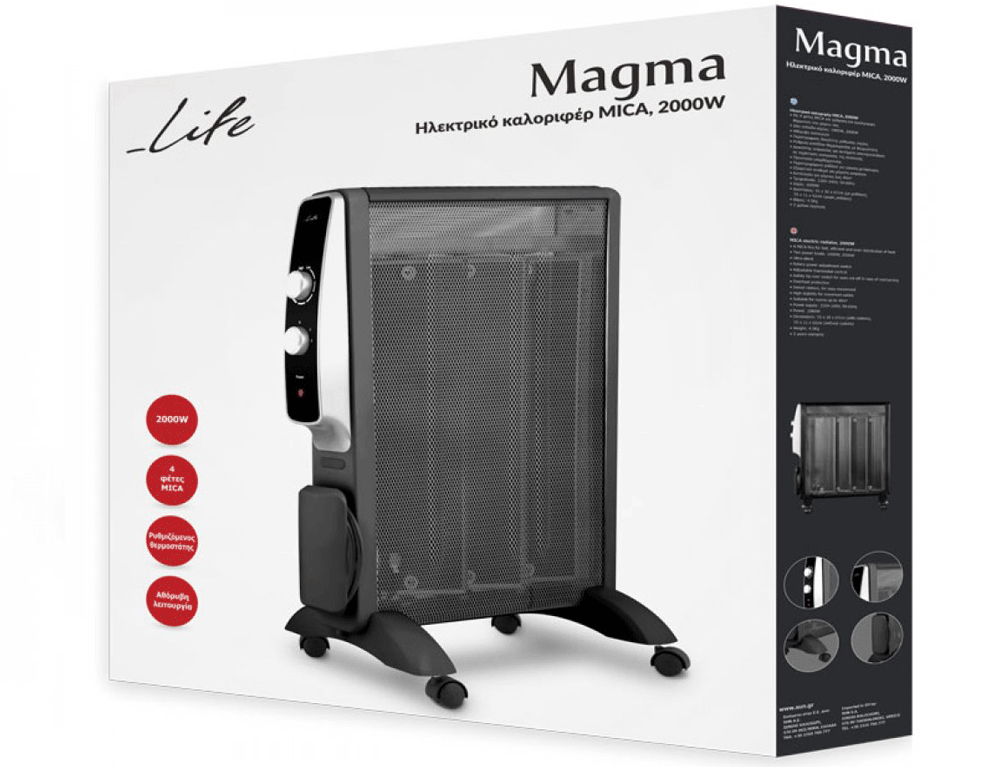 Τα βασικά πλεονεκτήματα του ηλεκτρικού καλοριφέρ LIFE Magma, είναι η άμεση απόδοση της θέρμανσης, το εξαιρετικά χαμηλό του βάρος και η αθόρυβη λειτουργία του! Παράλληλα, τα 2 μέτρα μήκος καλωδίου (μοντέλο 2021), σας επιτρέπει να βρίσκετε εύκολα και χωρίς ταλαιπωρία την ιδανική θέση για να σας ζεσταίνει.
