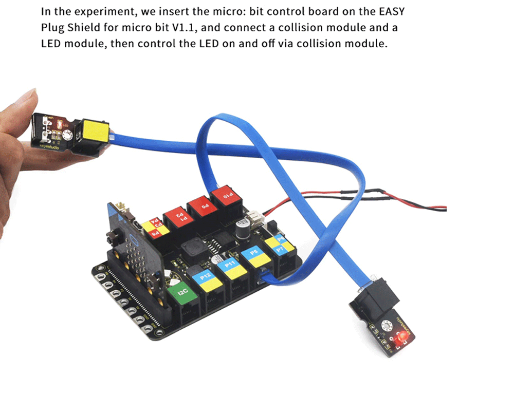 Τοποθετώντας την πλακέτα έλεγχου micro bit στο EASY Plug shield μπορείτε να συνδέσετε και άλλους αισθητήρες ή μονάδες μέσω των silver-plated επαφών και των 10 υποδοχών. Η σύνδεση γίνεται με την χρήση ενός ειδικού καλωδίου RJ11.