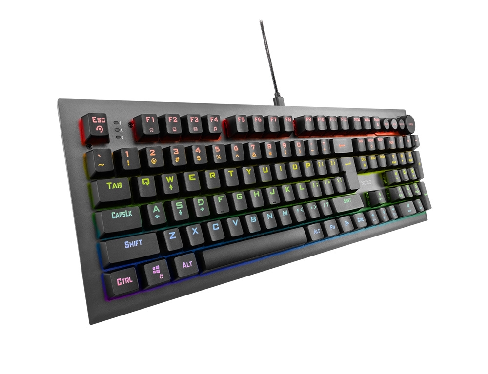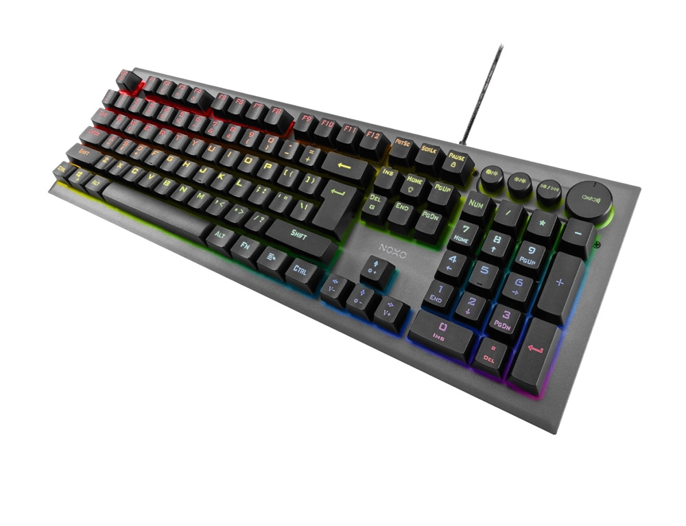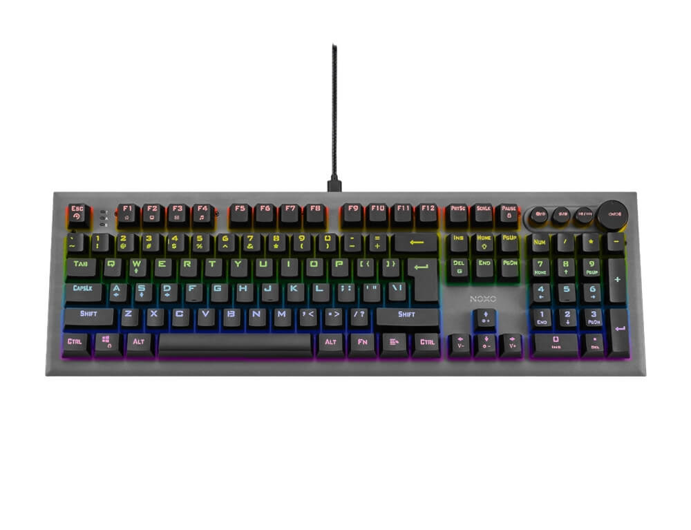Gaming μηχανικό πληκτρολόγιο της εταιρείας Noxo με RGB φωτιζόμενα πλήκτρα σε γλώσσα αγγλικά US. Είναι μηχανικό, καθιστώντας το ιδανικό για gamers όπως επίσης και για όσους επιθυμούν γρήγορη πληκτρολόγηση.