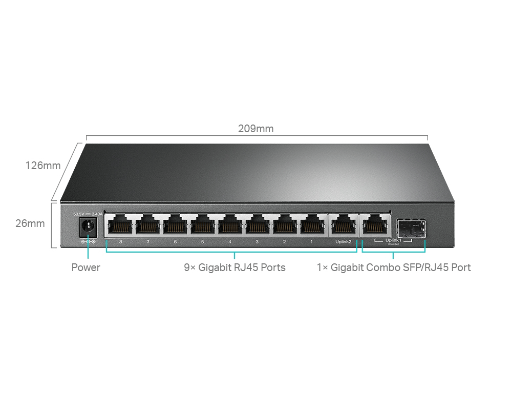 - 9× θύρες gigabit RJ45 και 1× θύρες combo gigabit SFP/RJ45