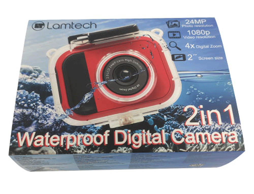 Ψηφιακή κάμερα από την Lamtech σε κόκκινο χρώμα με αδιάβροχη θήκη. Υποστηρίζει Loop recording & Sport mode και κάρτα μνήμης micro-SD 32 GB. Διαθέτει ενσωματαωμένη επαναφορτιζόμενη μπαταρία Li-ion 650mAh. Ανάλυση φωτογραφίας έως 24MP και ανάλυση βίντεο 1920 x 1080 στα 15fps.