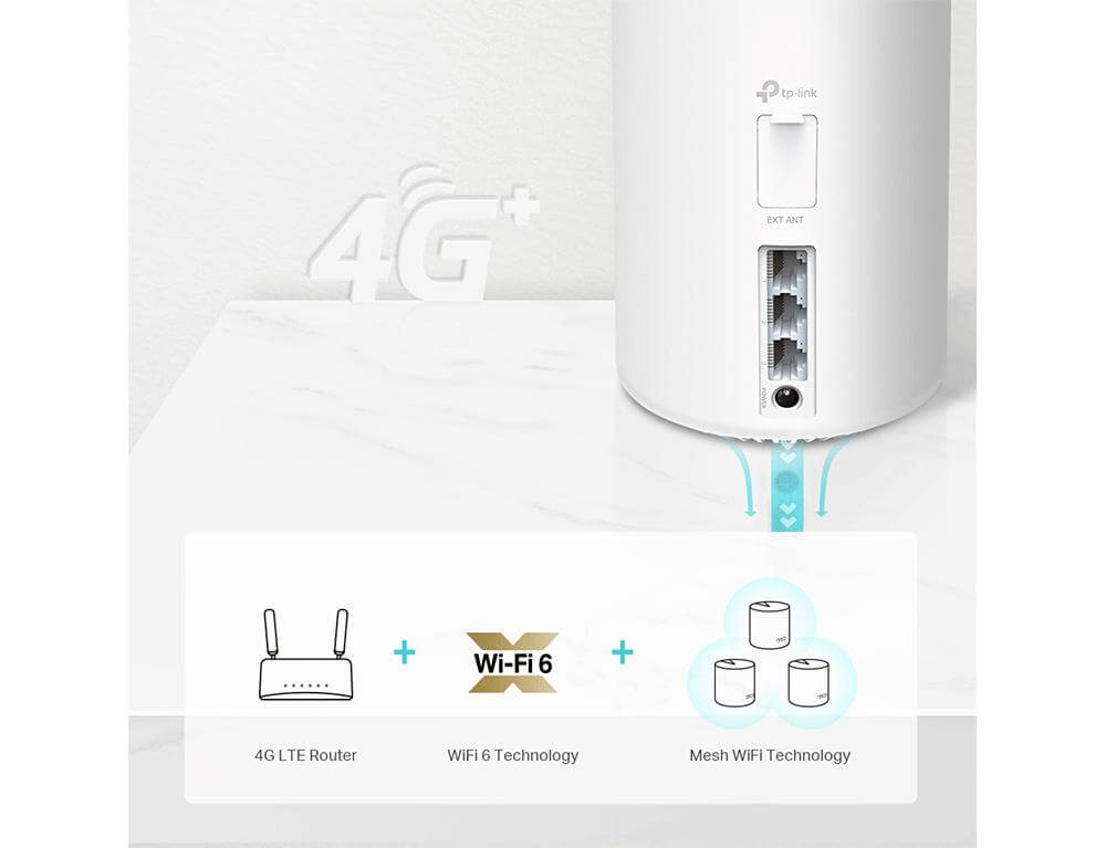 • Internet Παντού με Ταχύτητα 4G+ -  Παρέχει κάλυψη WiFi 6 Mesh μέσω πρόσβασης 4G+ CAT6