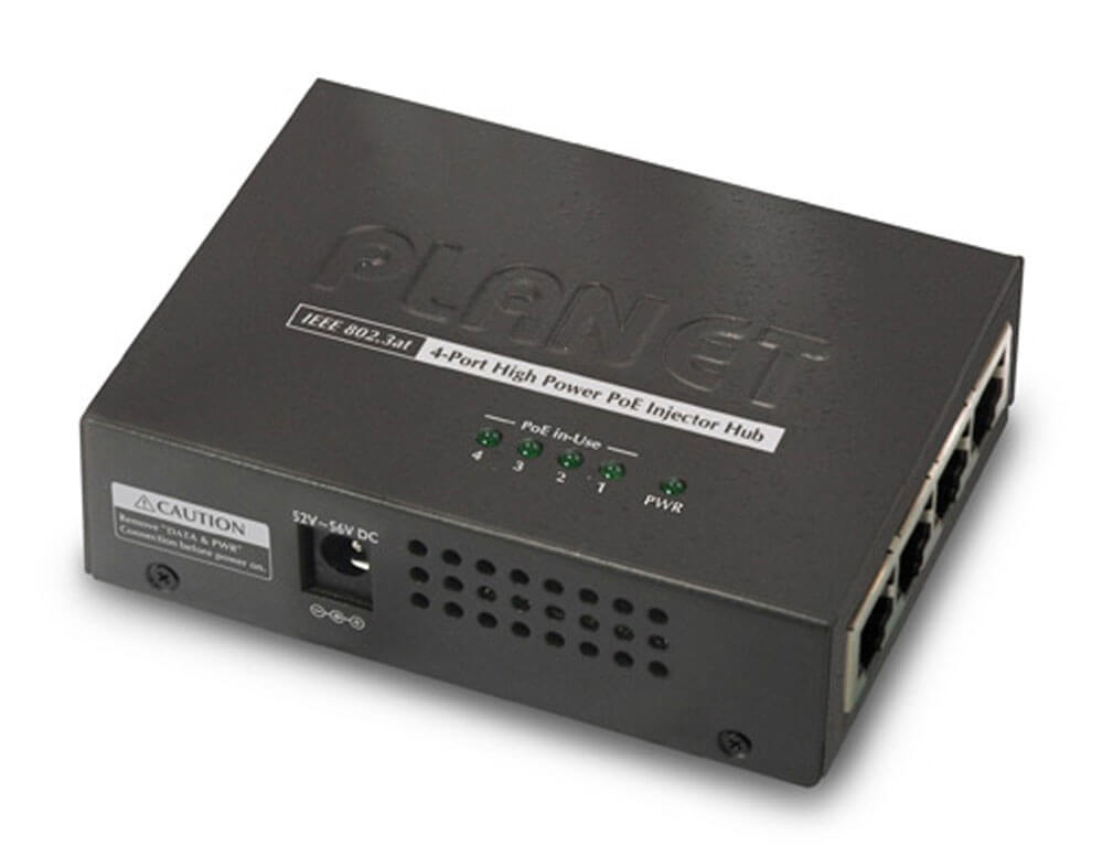 Το Planet HPOE-460 είναι η επόμενη γενιά 4-Port Gigabit High Power PoE Hub, με πρότυπο IEEE 802.3af και High Power IEEE 802.3at PoE που συνδυάζει ισχύ εξόδου έως και 30 watt και δεδομένα ανά θύρα σε μία CAT 5/5e /6 Καλώδιο Ethernet. Το HPOE-460 έχει σχεδιαστεί ειδικά για να ικανοποιεί την αυξανόμενη ζήτηση για δίκτυα PD (συσκευές με τροφοδοσία) υψηλότερης κατανάλωσης όπως PTZ (Pan, Tilt & Zoom) / Speed Dome IP κάμερες, πολλαπλών καναλιών (802.11a/b/g/n ) σημεία πρόσβασης ασύρματου LAN και άλλες συσκευές δικτύου σε εφαρμογές δικτύου SOHO και SMB. Το πρότυπο IEEE 802.3at Power over Ethernet έχει οριστεί για να παρέχει σε κάθε συσκευή PoE μέγιστη ισχύ εισόδου έως και 30 watt, που είναι διπλάσια ισχύς PoE, μεγαλύτερη από το συμβατικό 802.3af PoE PSE. Το πρότυπο IEEE 802.3at PoE είναι μια ιδανική λύση για την κάλυψη των απαιτήσεων υψηλής ισχύος απευθείας μέσω της διεπαφής θύρας RJ-45. Συμβατό με το IEEE 802.3at, το HPOE-460 διαθέτει ισχυρότερη ικανότητα ισχύος από το υπάρχον 802.3af PoE PSE.