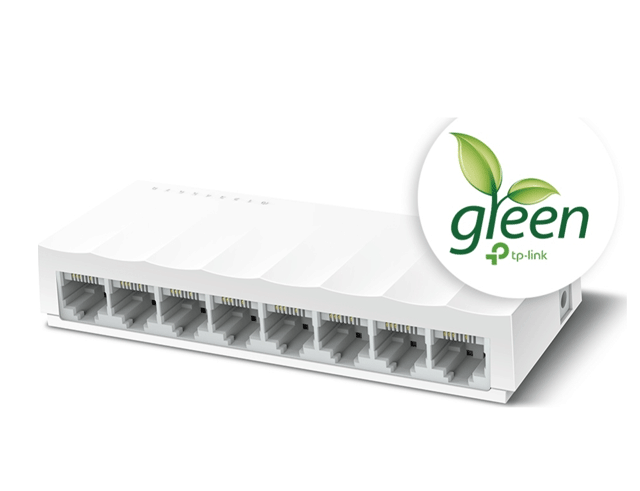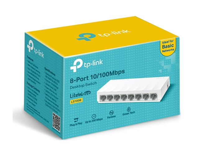 Έχει 8 θύρες ethernet με ταχύτητα 100Mbps.