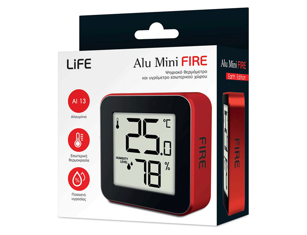 Ψηφιακό Θερμόμετρο/Υγρόμετρο Εσωτερικού Χώρου LiFE ALU MINI FIRE - Red