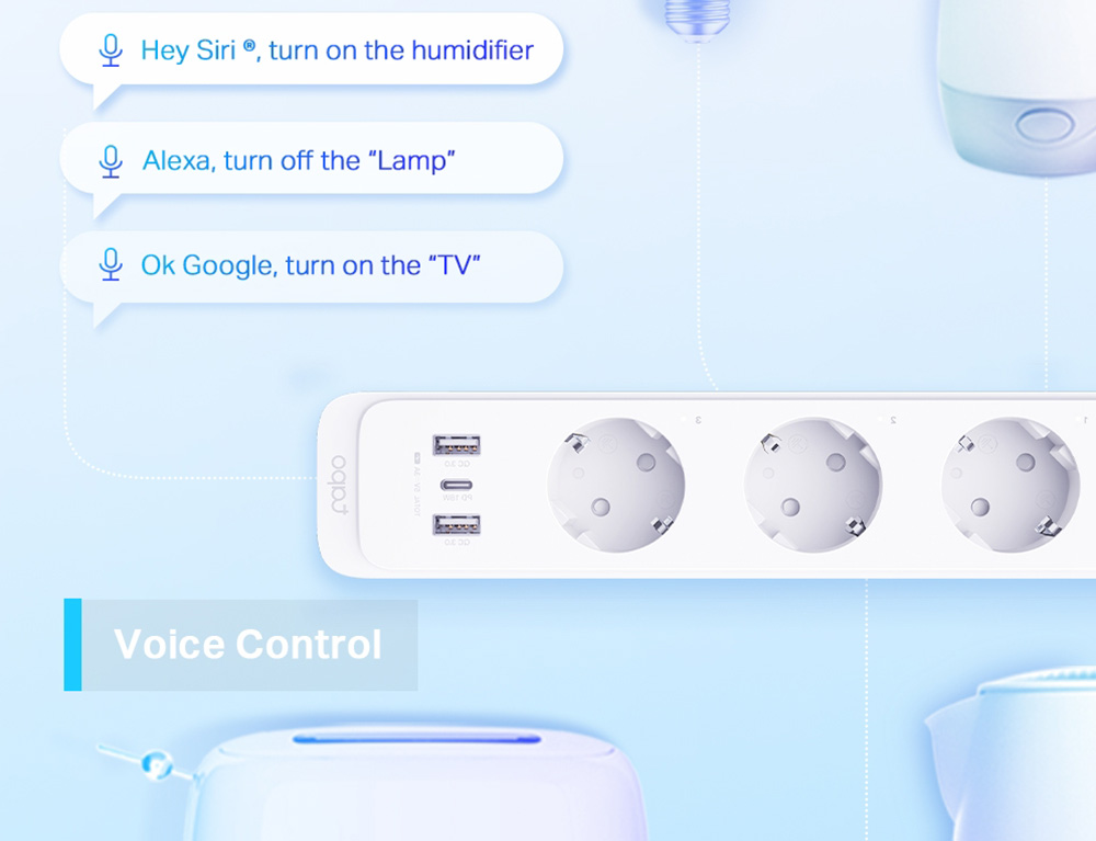 • Individual Control  –χωριστά 3 έξυπνες πρίζες στο πολύπριζο μέσω εφαρμογής ή φωνητικών εντολών