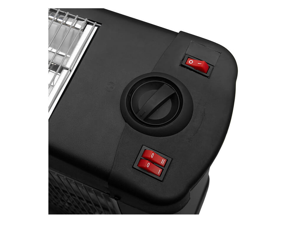 Έχει και εξαιρετική σταθερότητα χάρη στα μεγάλα πέλματα που διαθέτει. Διαθέτει πλέγμα ασφαλείας μπροστά από τις λάμπες, και πρέπει πάντα να τοποθετείται μακριά από εύφλεκτες επιφάνειες (πχ χαλιά, κουρτίνες). Ο ρυθμιζόμενος θερμοστάτης σας επιτρέπει να προσαρμόζετε ή να διατηρείτε σταθερή στα επιθυμητά πλαίσια τη θερμοκρασία του χώρου, καθ' όλη τη διάρκεια χρήσης της σόμπας.