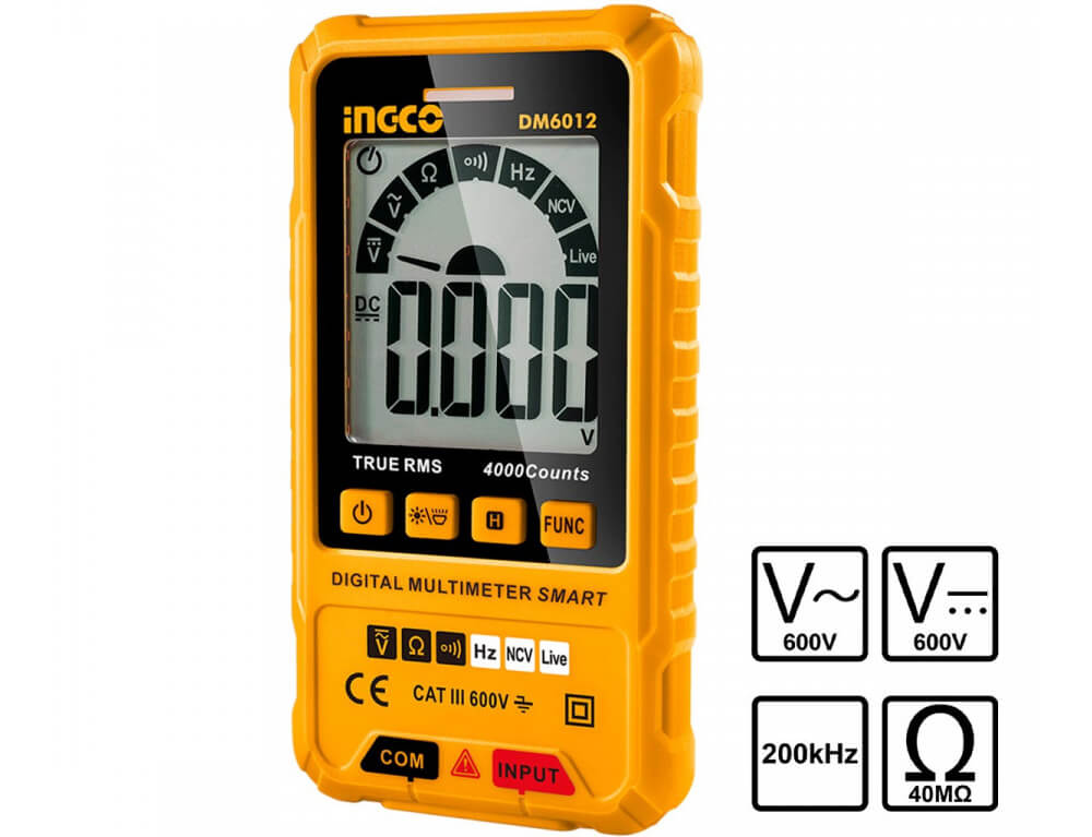 - Λεπτομέρειες προϊόντος: Για συνεχόμενο και για εναλλασσόμενο ρεύμα (AC/DC). Εύρος μέτρησης: (εύρος ενδείξεων μέτρησης 4000): • τάσης εναλλασσόμενου ρεύματος AC 4V - 600V, • τάσης συνεχούς ρεύματος DC 4V - 600V, • αντίστασης 4000Ω - 40ΜΩ, • συχνότητα 4Hz – 40KHz. Οθόνη LCD με μεγάλα, ευδιάκριτα ψηφία. Οπίσθιος φωτισμός (backlight). Φακός led. Συγκράτηση μέτρησης (hold). Έλεγχος συνέχειας με βομβητή (<50Ω). NCV: Ανιχνευτής τάσης άνευ επαφής. Ένδειξη χαμηλής τάσης μπαταρίας. Αυτόματη απενεργοποίηση. Κατηγορία μέτρησης CAT III.