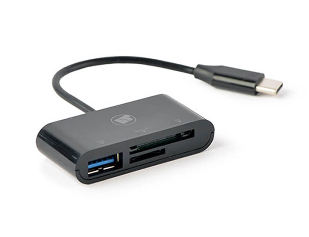 Συμπαγής συσκευή ανάγνωσης/εγγραφής καρτών USB-C. Υποστηρίζει κάρτες μνήμης SD και TF (microSD), καθώς και μονάδες flash USB. Η θύρα USB επιτρέπει τη σύνδεση τυπικών περιφερειακών USB (π.χ. ποντίκι, πληκτρολόγιο). Ενσωματωμένο καλώδιο σύνδεσης USB Type-C. Δεν απαιτείται πρόγραμμα οδήγησης και εξωτερικό τροφοδοτικό.