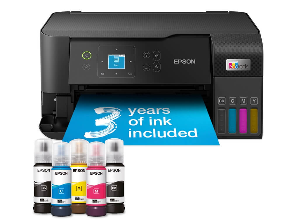 Ιδανικός για σύγχρονα οικιακά περιβάλλοντα με συχνές ανάγκες εκτύπωσης, αυτός ο εκτυπωτής inkjet A4 έχει εύχρηστη οθόνη, επαναγεμιζόμενα δοχεία μελανιού και έως και 63 cartidges σε ένα σετ ανταλλακτικών φιαλιδίων* για εξαιρετικά χαμηλό κόστος εκτύπωσης ανά σελίδα. Οι οικιακές λειτουργίες περιλαμβάνουν Wi-Fi, σάρωση και αντιγραφή.