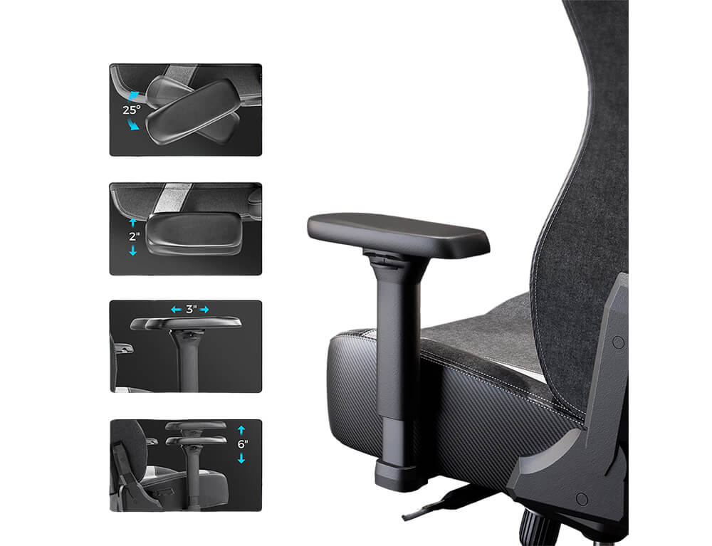 Είναι σχεδιασμένη για ατελείωτες ώρες παιχνιδιού, για εργασία σε γραφείο ή για μακρές περιόδους στον υπολογιστή. Διαθέτει ρυθμιζόμενο ύψος, ρυθμιζόμενα μπράτσα, ρυθμιζόμενη γωνία κλίσης και πλάτης και μαξιλάρι στη μέση για επιπλέον άνεση και στήριξη. Επίσης είναι κατασκευασμένη από συνθετικό δέρμα PU, για μεγαλύτερη αντοχή και ανθεκτικότητα.