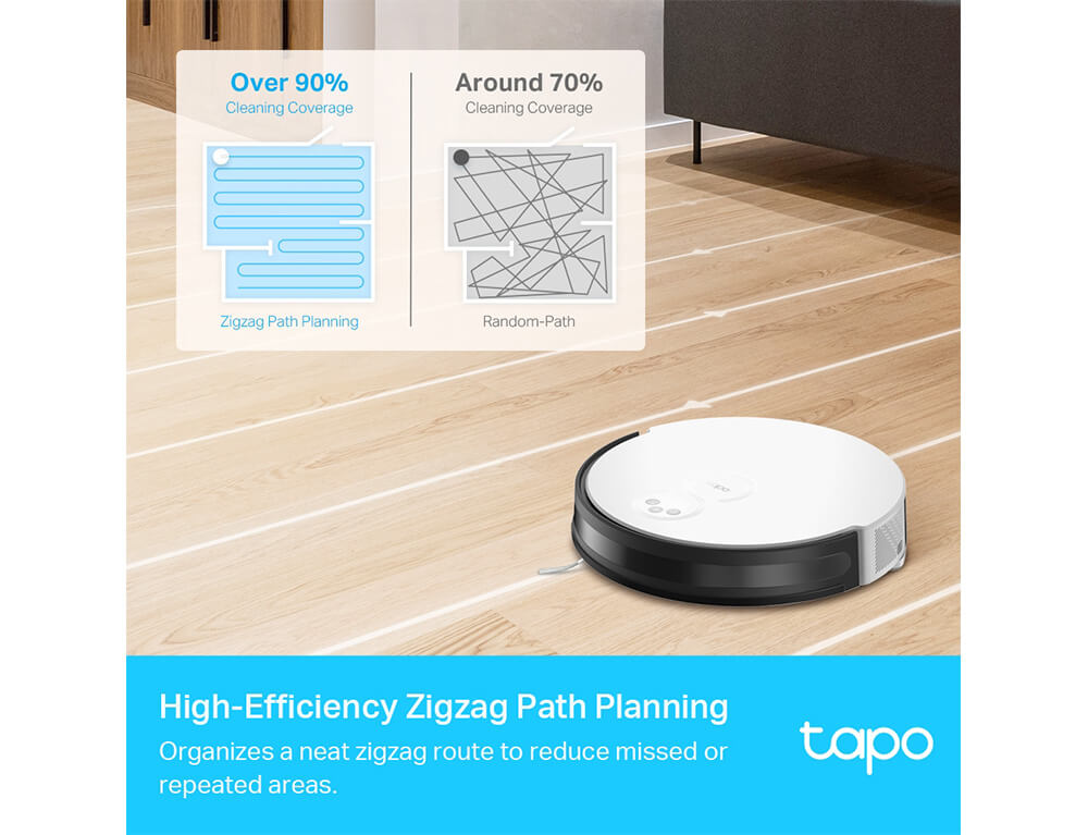 Οργανώνει μια τακτοποιημένη διαδρομή ζιγκ-ζαγκ για να μειώσει τις χαμένες ή επαναλαμβανόμενες περιοχές σε σύγκριση με τις σκούπες ρομπότ τυχαίας διαδρομής.