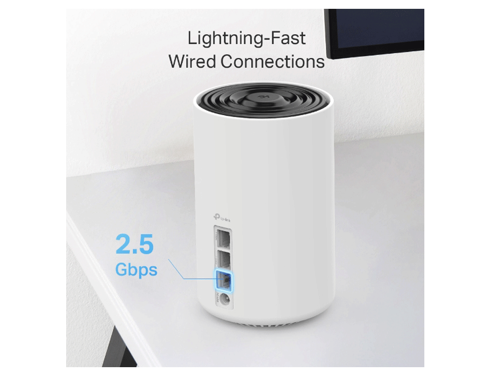 Μια θύρα 2,5 Gbps και 2 θύρες Gigabit σάς επιτρέπουν να εκμεταλλευτείτε πλήρως την ευρυζωνική σας ταχύτητα. Συνδέστε τους υπολογιστές, τις έξυπνες τηλεοράσεις ή τις κονσόλες παιχνιδιών σας στις θύρες για απίστευτα γρήγορες ενσύρματες συνδέσεις.