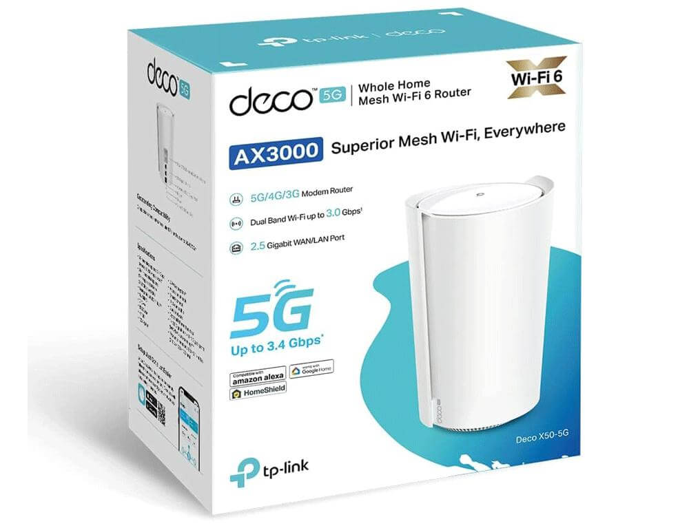 Με προηγμένη θύρα 2,5 Gigabit, το Deco X50-5G παρέχει αξιόπιστες συνδέσεις με ταχύτητα παραμόρφωσης για ενσύρματες συσκευές υψηλής έντασης. Όταν έχει οριστεί ως ασύρματος δρομολογητής, οι δύο θύρες Ethernet υποστηρίζουν τη χρήση ως εφεδρικά σημεία ευρυζωνικής πρόσβασης.