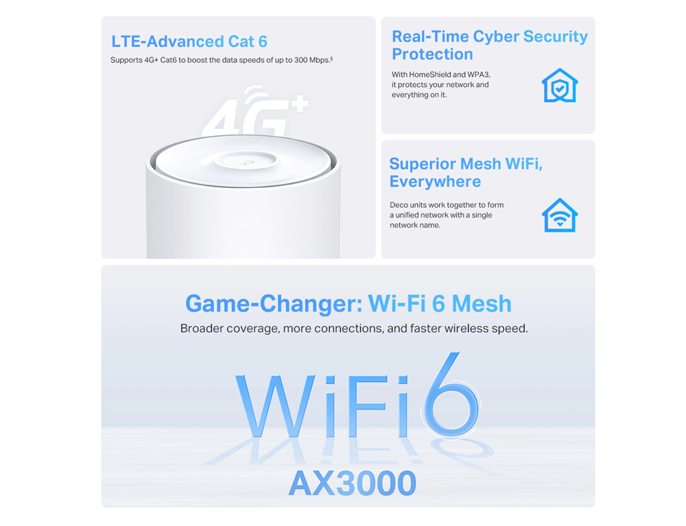 Internet Παντού με Ταχύτητα 4G+ – Παρέχει κάλυψη WiFi 6 Mesh μέσω πρόσβασης 4G+ CAT6.