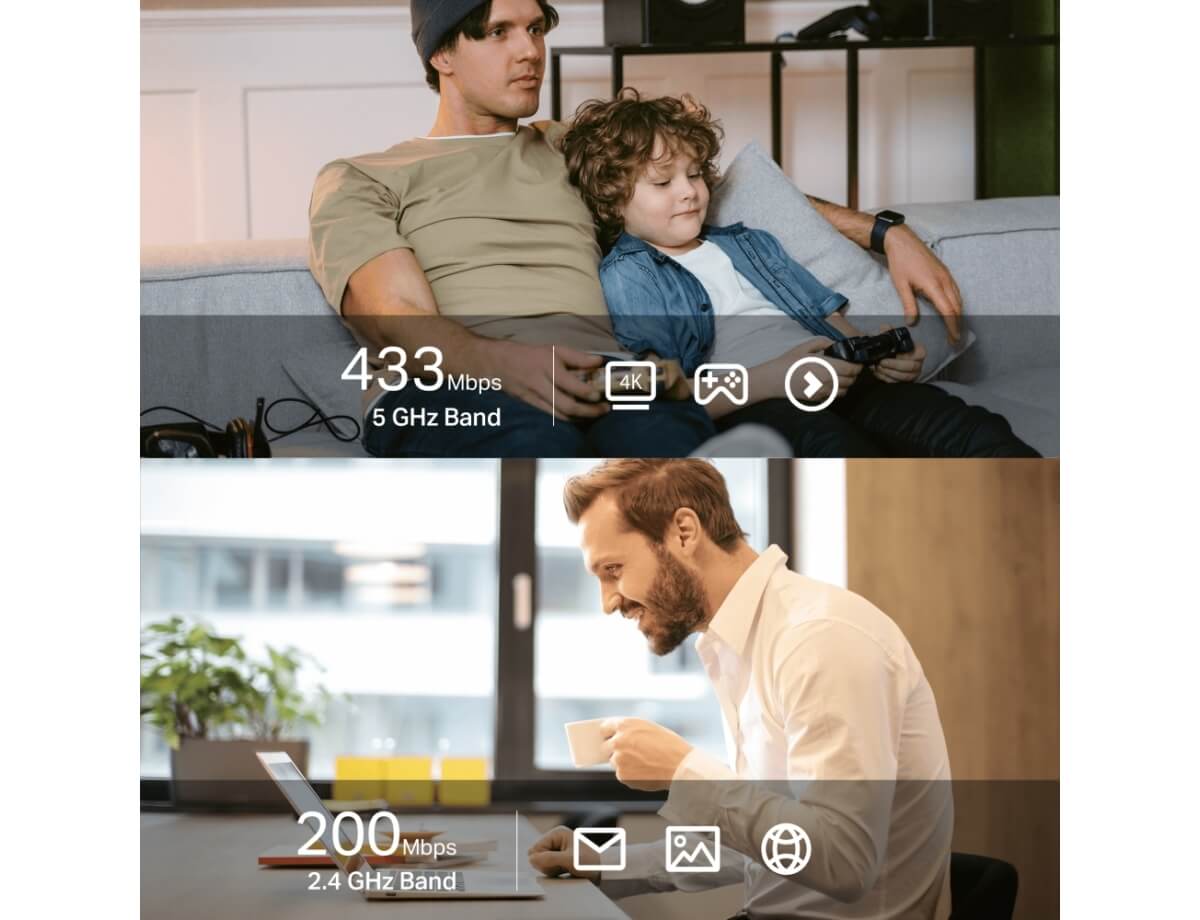 - WiFi υψηλής ταχύτητας – Ταχύτητες έως 600Mbps με 200Mbps στα 2,4GHz και 433 Mbps στα 5GHz, αναβαθμίζει τις συσκευές σας σε υψηλότερες ταχύτητες WiFi AC.