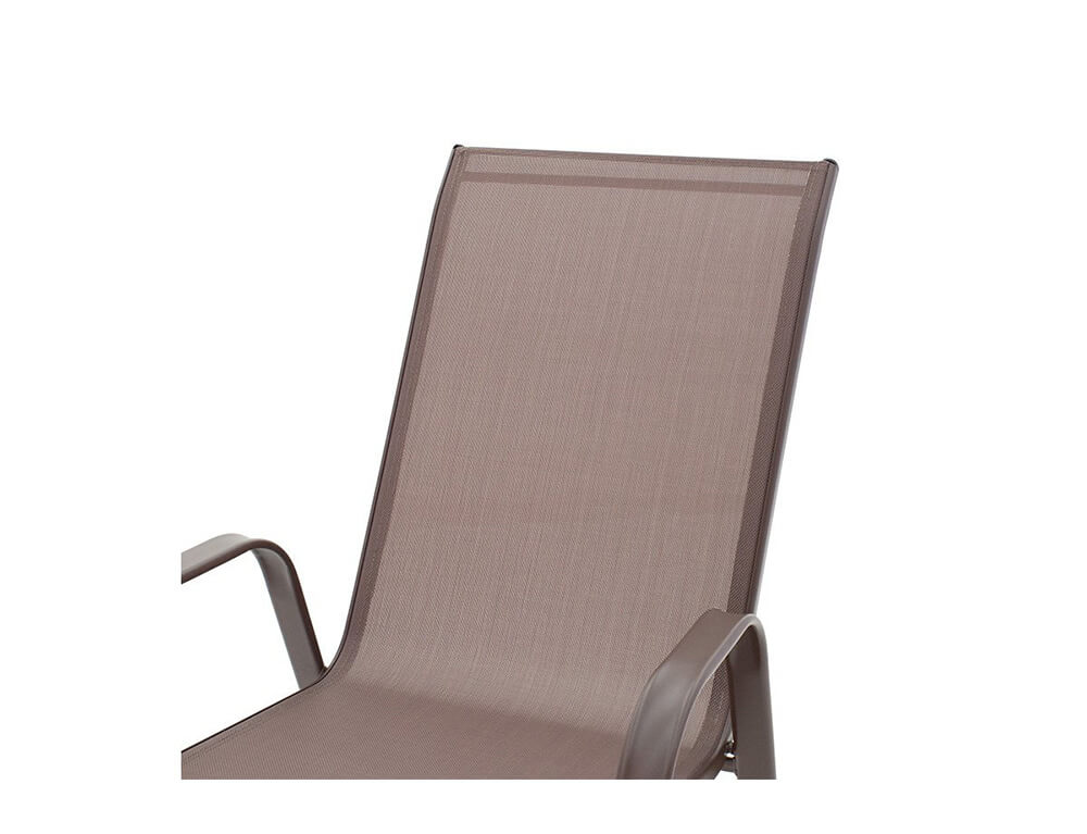 • Σταθερός σκελετός από μέταλλο με αντοχή στην καταπόνηση και στη φθορά. Κυρίως σώμα καρέκλας από εξαιρετικής ποιότητας textilene. Το textilene είναι ύφασμα μεγάλης αντοχής στην ηλιακή ακτινοβολία και την υγρασία ενώ παράλληλα αφήνει το δέρμα να "αναπνέει" δημιουργώντας έτσι άνεση στο κάθισμα.