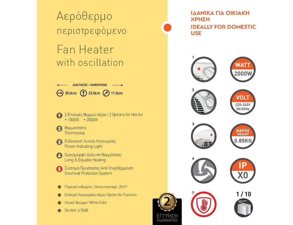 - Στάθμη Έντασης Ήχου σε dB: ≤50dB