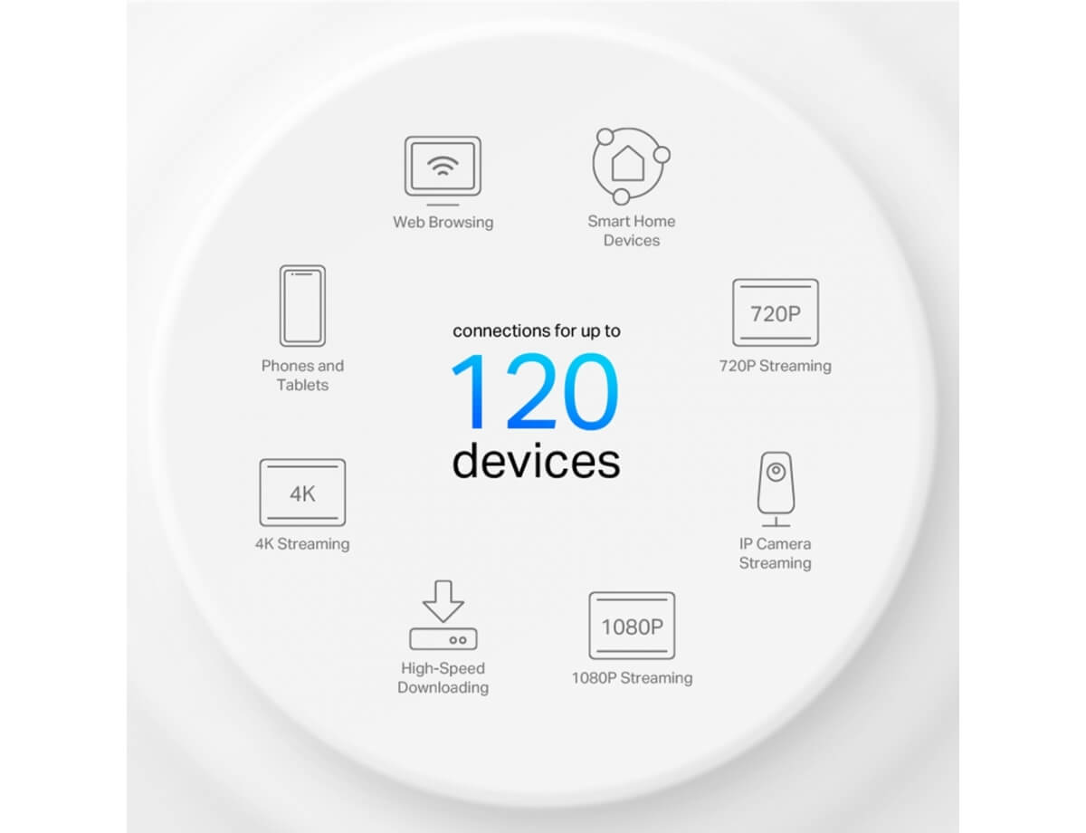 Η τεχνολογία αμφίδρομης MU-MIMO επιτρέπει σε πολλές συσκευές να λαμβάνουν δεδομένα ταυτόχρονα, έτσι ώστε το δίκτυο WiFi σας να μπορεί να χειρίζεται περισσότερες συσκευές ταυτόχρονα, μειώνοντας την προσωρινή μνήμη και βελτιώνοντας τη συνολική απόδοση.