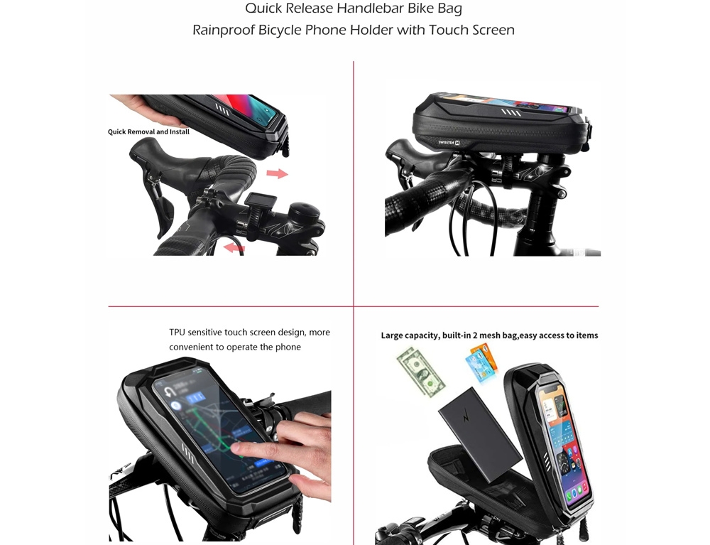 Χρησιμοποιώντας Velcro, το smartphone στερεώνεται μέσα στη θήκη κάτω από τη διαφανή μεμβράνη. Η οθόνη του smartphone είναι σαφώς ορατή μέσω αυτής, καθιστώντας τη θήκη κατάλληλη για χρήση με πλοήγηση, για παράδειγμα. Το smartphone μπορεί φυσικά να λειτουργήσει μέσω της μαρμαρυγίας.