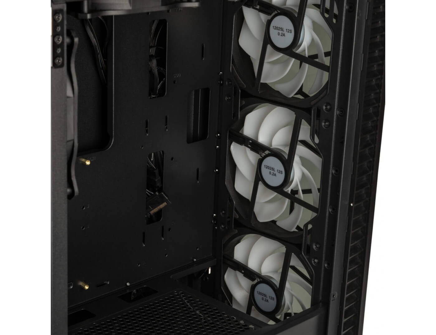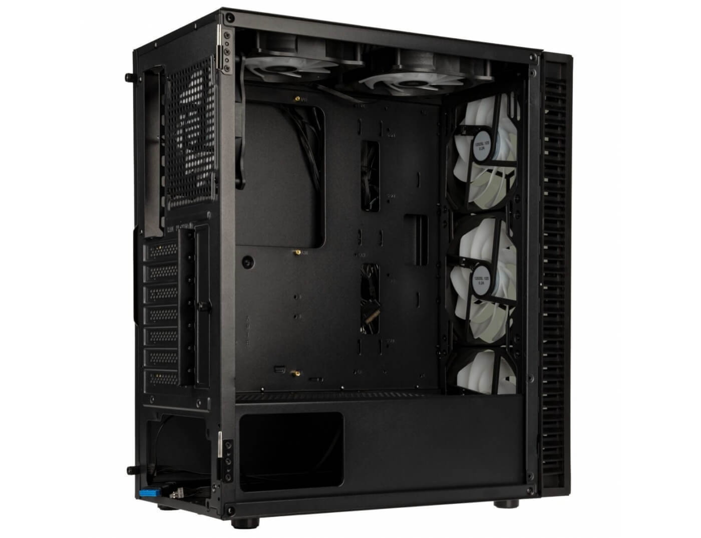 Εναλλακτικά, μπορούν να εγκατασταθούν έως και τρεις ανεμιστήρες 120 mm στο μπροστινό μέρος, ενώ δύο ανεμιστήρες 140 mm μπορούν να συνδεθούν στο πάνω μέρος. Επιπλέον, υπάρχουν υποδοχές για δύο ανεμιστήρες 120 mm στο κάλυμμα του τροφοδοτικού, οι οποίοι επιτρέπουν την άμεση ψύξη του θαλάμου του τροφοδοτικού και της κάρτας γραφικών.