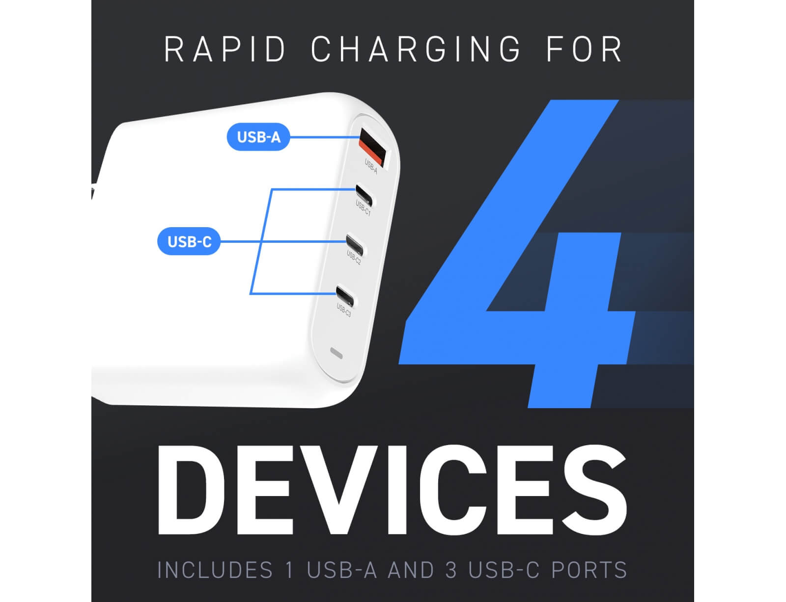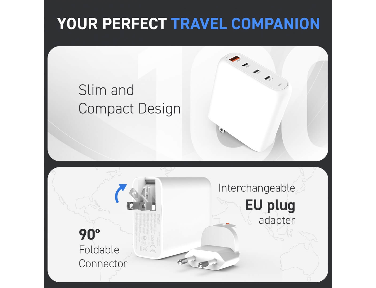Εικόνα Φορτιστής Creative GaN (181522) 100W - 1x USB-A, 3x USB-C - Λευκός