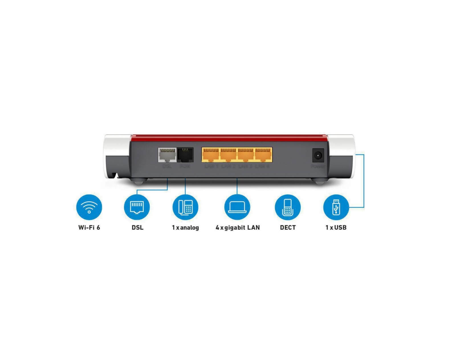 • Σταθμός βάσης DECT για έως και έξι ασύρματα τηλέφωνα και εφαρμογές Smart Home