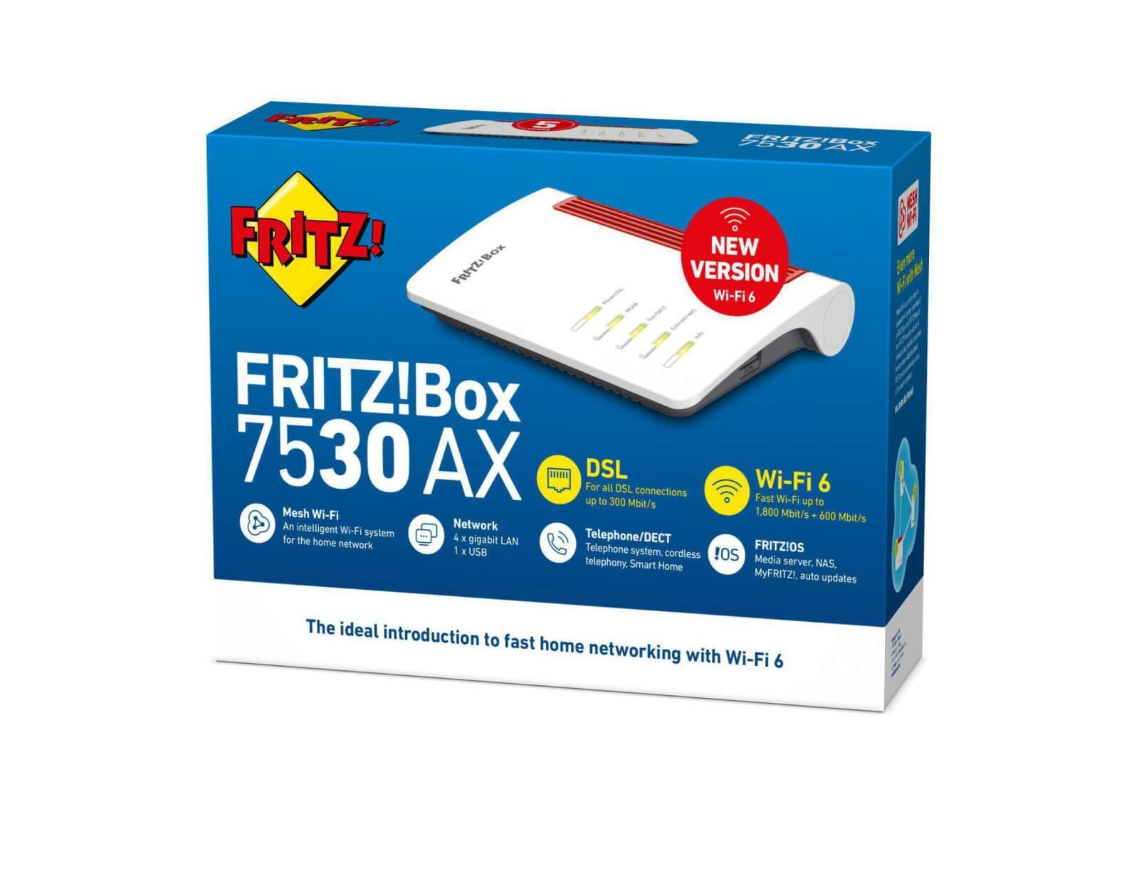 Με το νέο FRITZ! Box 7530 AX, η AVM λανσάρει έναν γρήγορο, ευέλικτο δρομολογητή για όλες τις συνδέσεις DSL με το νεότερο στάνταρντ Wi-Fi 6. Εκτός από υψηλότερους ρυθμούς δεδομένων και καλύτερους χρόνους απόκρισης, το πρότυπο Wi-Fi 6 επιτρέπει την ταυτόχρονη χρήση πολλών συσκευών στο ίδιο περιβάλλον WiFi.