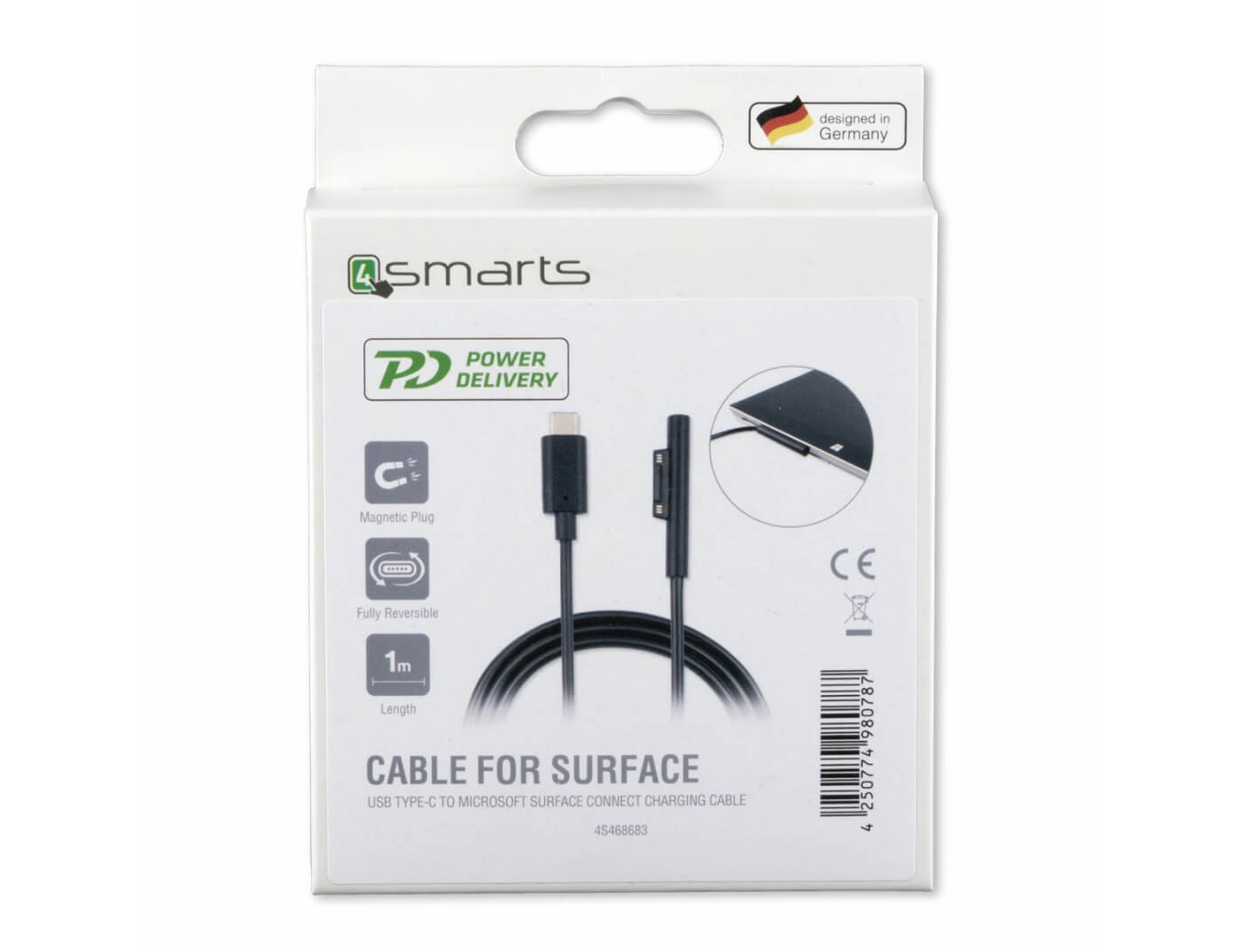 Το καλώδιο 4smarts USB-C σε Microsoft Surface Connect σάς επιτρέπει να φορτίζετε τη συσκευή σας Microsoft Surface γρήγορα και αποτελεσματικά. Σημειώστε ότι η υποδοχή είναι πλήρως αναστρέψιμη, καθιστώντας την ακόμα πιο φιλική προς το χρήστη.