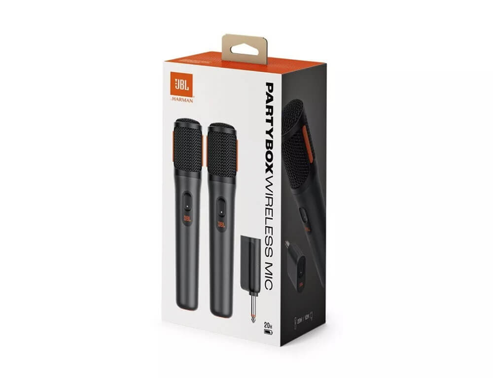 Κάνε τις καλές στιγμές ακόμα καλύτερες με τα JBL PartyBox Wireless Mics. Απλώς σύνδεσέ τα με οποιοδήποτε JBL PartyBox, ή χρησιμοποίησε το dongle για την ελευθερία που φέρνει η ασύρματη σύνδεση, και άφησε τη φωνή σου να ακουστεί. Σε εσωτερικούς ή εξωτερικούς χώρους, η φωνές σας θα ακούγονται καθαρές και σαγηνευτικές με αυτά τα μικρόφωνα που είναι ειδικά σχεδιασμένα για να ακούγονται καταπληκτικά σε οποιοδήποτε ηχείο PartyBox. Ένα ενσωματωμένο φίλτρο ελαχιστοποιεί τυχόν ξένους φωνητικούς ήχους καθώς τραγουδάτε ένα ντουέτο με τον καλύτερό σας φίλο, και ένα σύστημα απορρόφησης ήχου κρατά τα πράγματα ήσυχα όταν δίνετε το μικρόφωνο σε κάποιον άλλο. Έως και 20 ώρες διάρκεια μπαταρίας και αφού τα μικρόφωνα μπορούν να χρησιμοποιούνται ενώ φορτίζονται ταυτόχρονα από το ενσωματωμένο power bank του PartyBox, η διασκέδαση θα διαρκέσει όσο και το πάρτι.