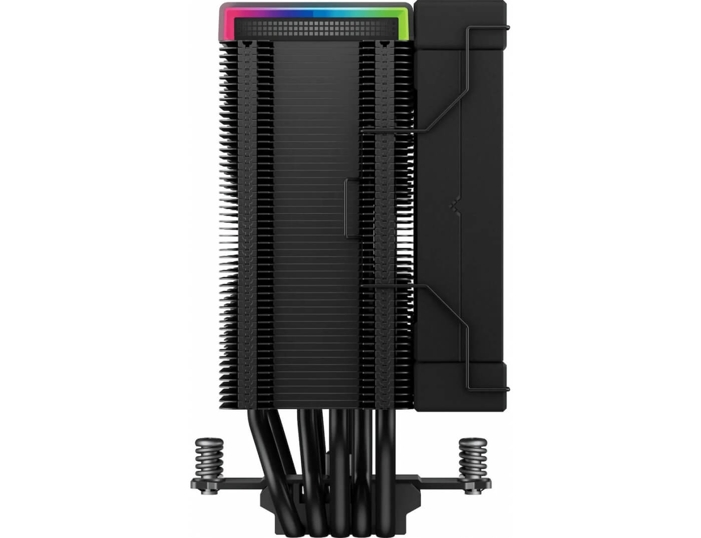 Μια λεπτή ολόμαυρη διάταξη πύργων πέντε σωλήνων θερμότητας, μοναδικό σχέδιο πτερυγίων μαύρης μήτρας και ανεμιστήρα FDB υψηλής απόδοσης που προσφέρει εξαιρετική απαγωγή θερμότητας και εξαιρετικά χαμηλά επίπεδα θορύβου.