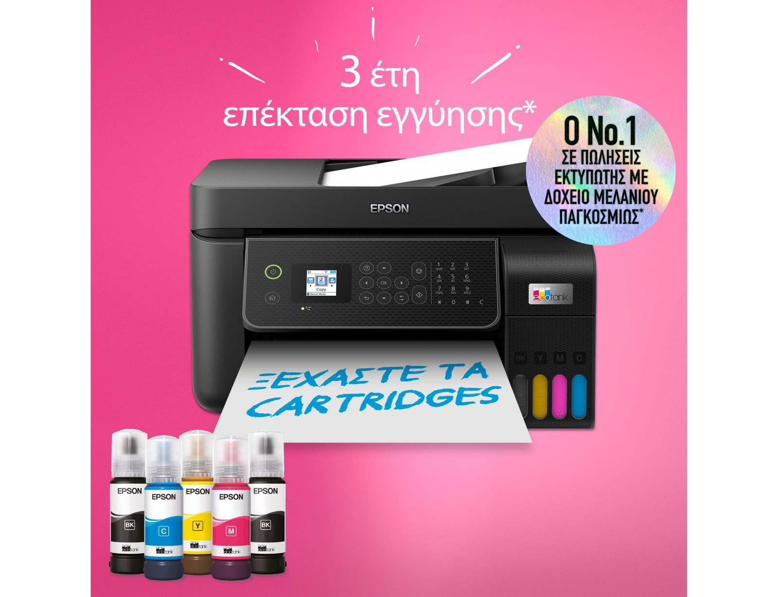 Αυτός ο οικονομικός εκτυπωτής μειώνει το κόστος εκτύπωσης έως 95%* και περιλαμβάνει στη συσκευασία μελάνι που καλύπτει τις ανάγκες σου για έως 3 έτη*. Εκτύπωσε έως 8.100 ασπρόμαυρες και 6.500 έγχρωμες σελίδες.