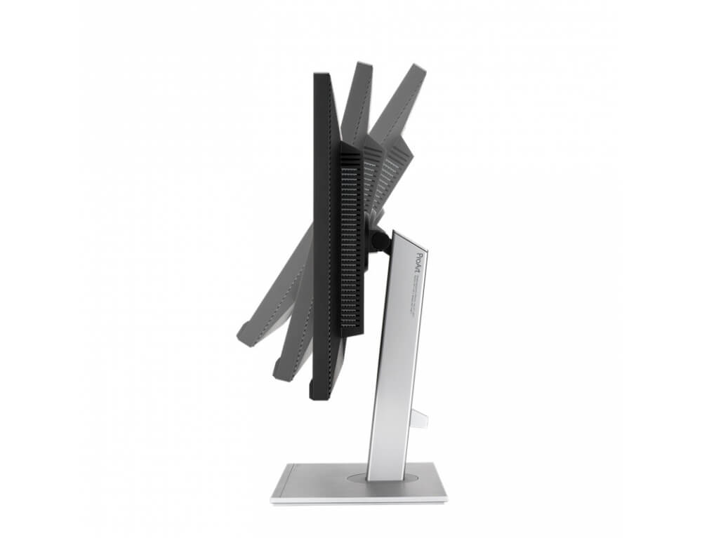 Με μια εργονομικά σχεδιασμένη βάση με ρυθμίσεις κλίσης, περιστροφής και ύψους, η ProArt παρέχει άνετη εμπειρία θέασης και χρήσης. Η δυνατότητα περιστροφής της οθόνης κατά 90 μοίρες δεξιόστροφα ή αριστερόστροφα για χρήση σε κατακόρυφη λειτουργία είναι βολική όταν εργάζεστε με μακροσκελή έγγραφα, κωδικοποίηση ή περιήγηση σε ιστότοπους. Επιπλέον, η βάση ταχείας απελευθέρωσης διευκολύνει την τοποθέτηση της οθόνης μέσω της ενσωματωμένης επιτοίχιας βάσης VESA χωρίς βίδες, ώστε να γίνεται σε δευτερόλεπτα.
