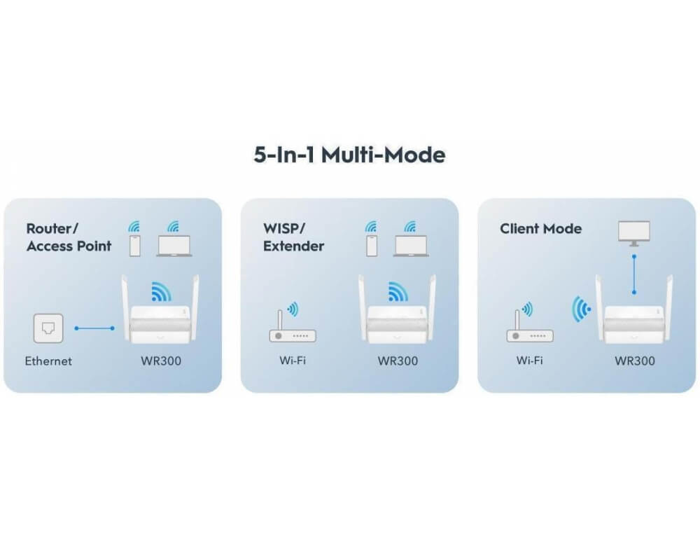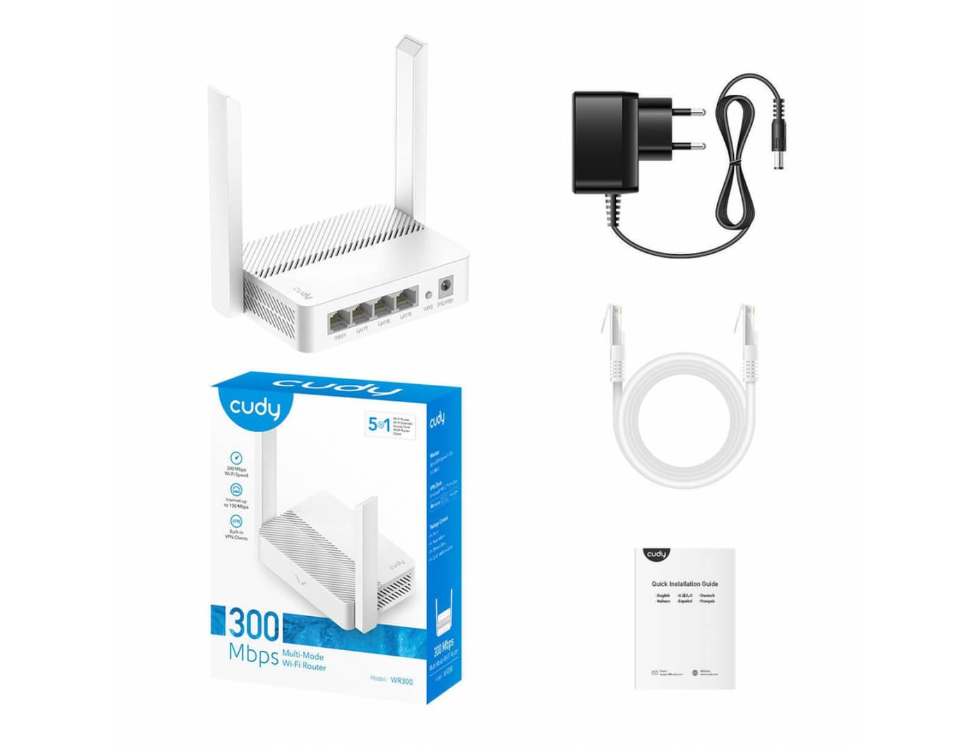 Επιπλέον, το Cudy WR300 είναι ευέλικτος και μπορεί να χρησιμοποιηθεί σε διάφορες περιπτώσεις: στοχοθετώντας τη σύνδεση σε δημόσια δίκτυα, δημιουργώντας ένα αξιόπιστο οικιακό δίκτυο ή χρησιμοποιώντας τον ως προσαρμογέα Wi-Fi (πελάτη) για τις ενσύρματες συσκευές σας.