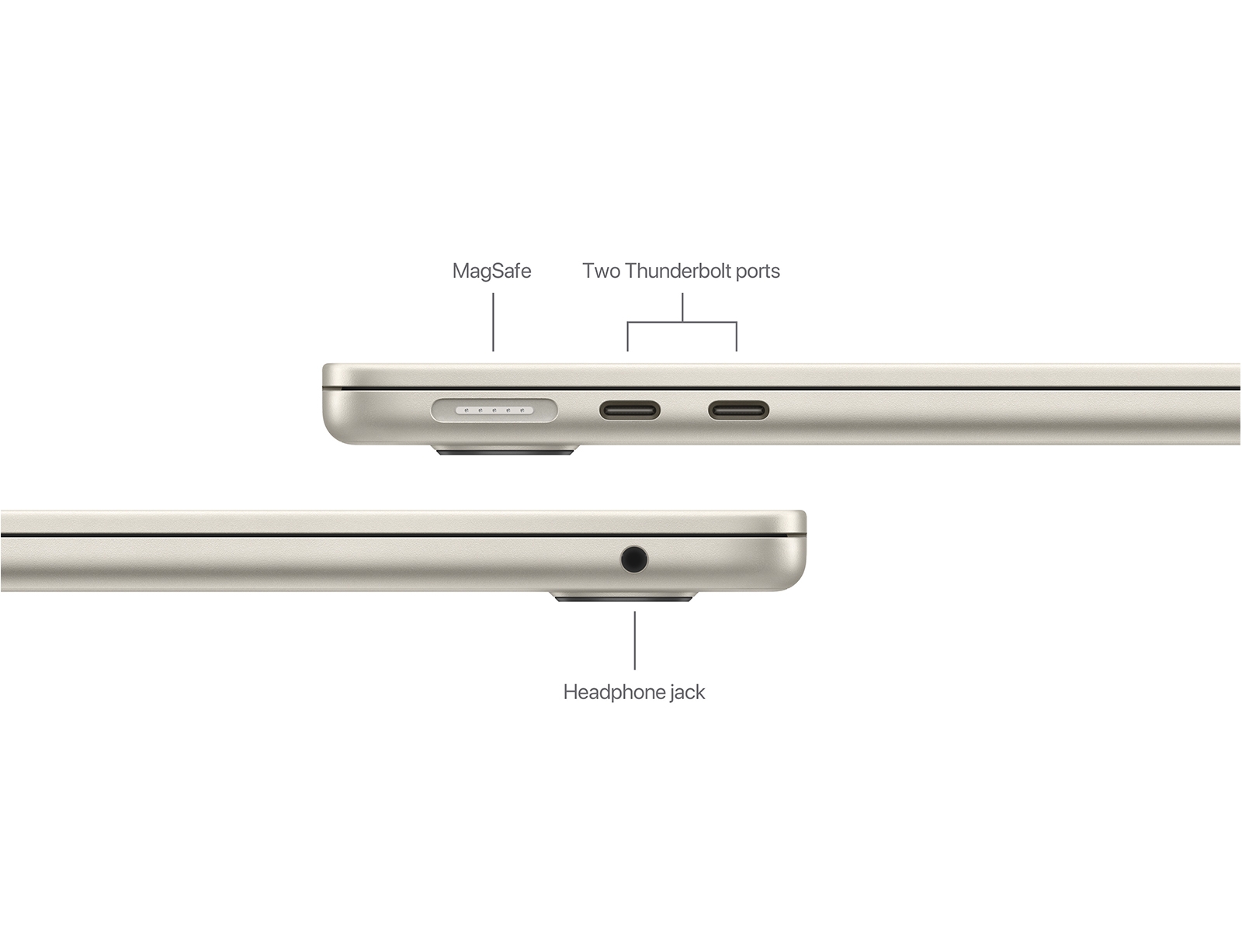 | Θύρες | Θύρα φόρτισης MagSafe 3, Υποδοχή ακουστικών 3,5 mm, Δύο θύρες Thunderbolt / USB 4 με υποστήριξη για: Φόρτιση DisplayPort Thunderbolt 3 (έως 40Gb/s) USB 4 (έως 40Gb/s) |