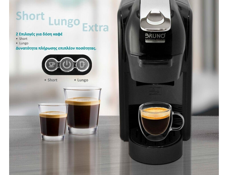 - Επιλογή δόσης: 2 επιλογές για δόση καφέ (Short & Lungo)