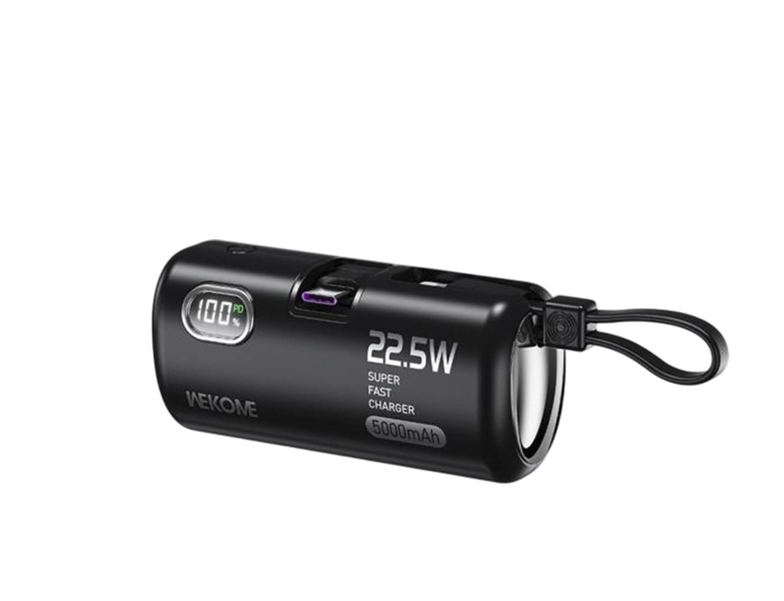Power Bank WK 5000mAh με ισχύ 22,5W, υποστήριξη PDx2. Ιδανική επιλογή για φόρτιση κινητών συσκευών και άλλων ηλεκτρονικών. Έρχεται σε μαύρο χρώμα, προσφέροντας κομψό και λειτουργικό σχεδιασμό.