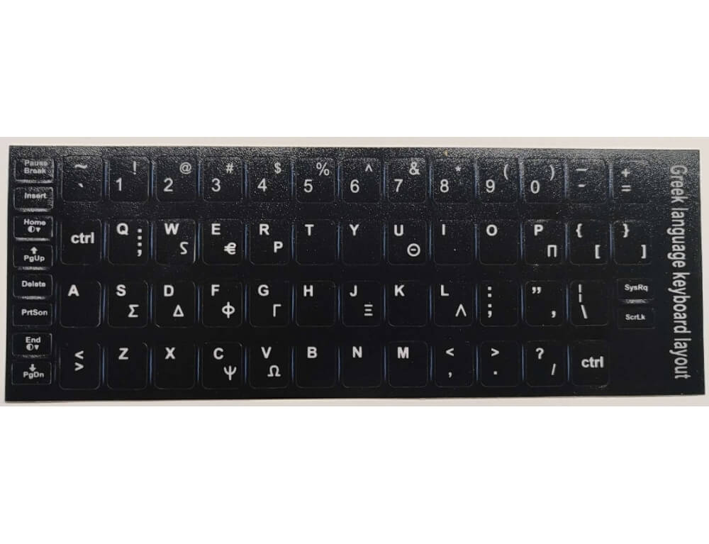 Αυτοκόλλητα Ελληνικά Γράμματα (Greek keyboard letters ) για πληκτρολόγιο notebook Μάυρο πλαίσιο