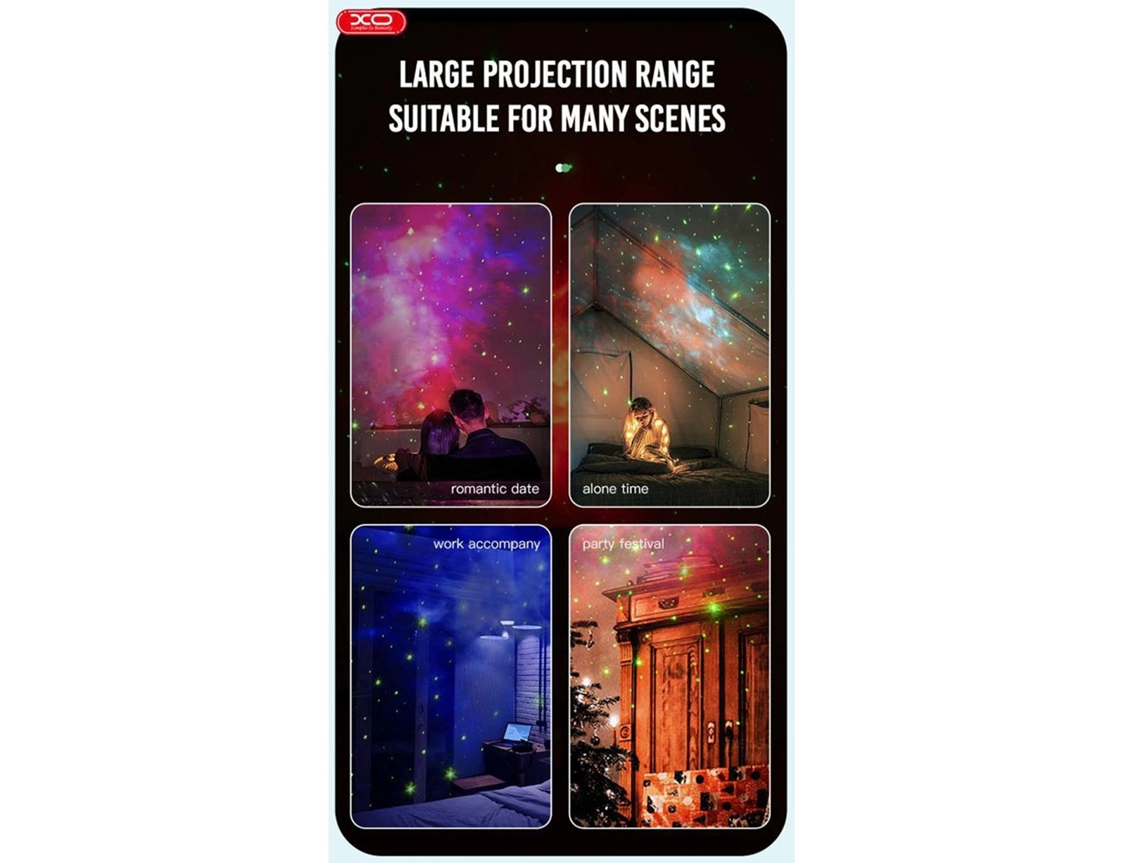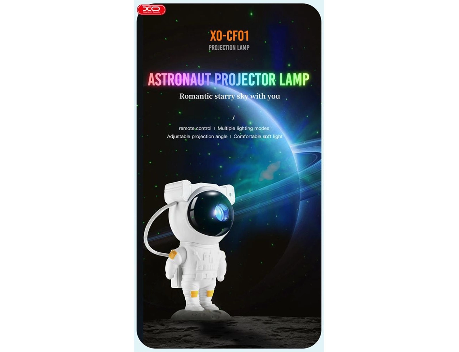 Ο προβολέας αστεριών και γαλαξιών σε σχήμα αστροναύτη είναι ένα εντυπωσιακό gadget από την XO. Προβάλλει πολύχρωμα και κινούμενα μοτίβα γαλαξιών και αστέρια λέιζερ.