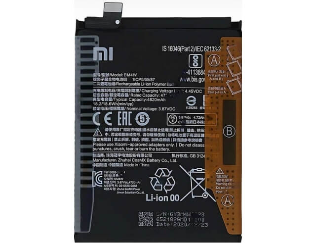 BM4W Xiaomi Battery (Original Service Pack) for Mi 10T Lite (MZB07Z0IN), Mi 10T Lite 5G (M2007J17G)
