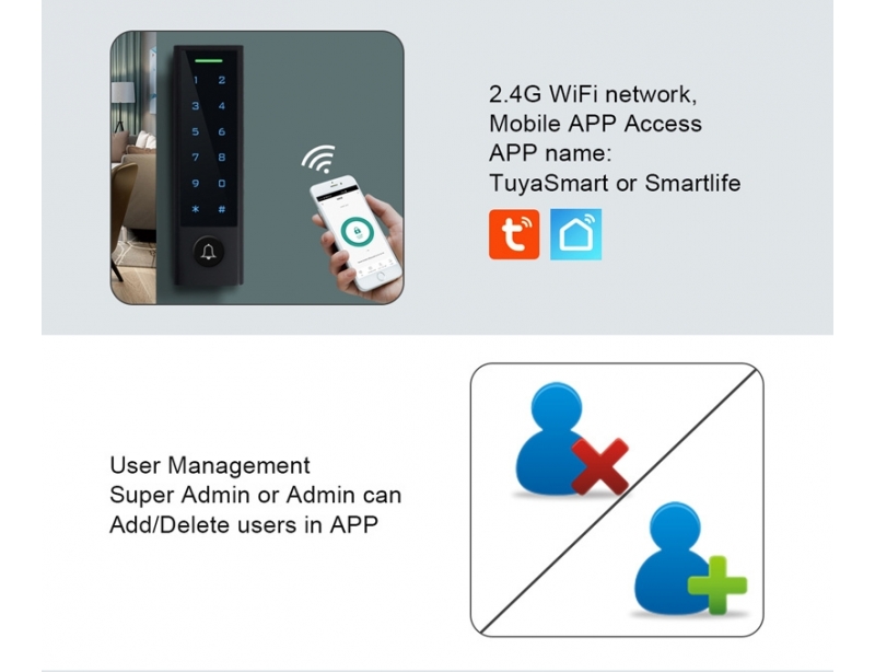 - Πρόσβαση με κωδικό, κάρτα (EM+MF) & smartphone