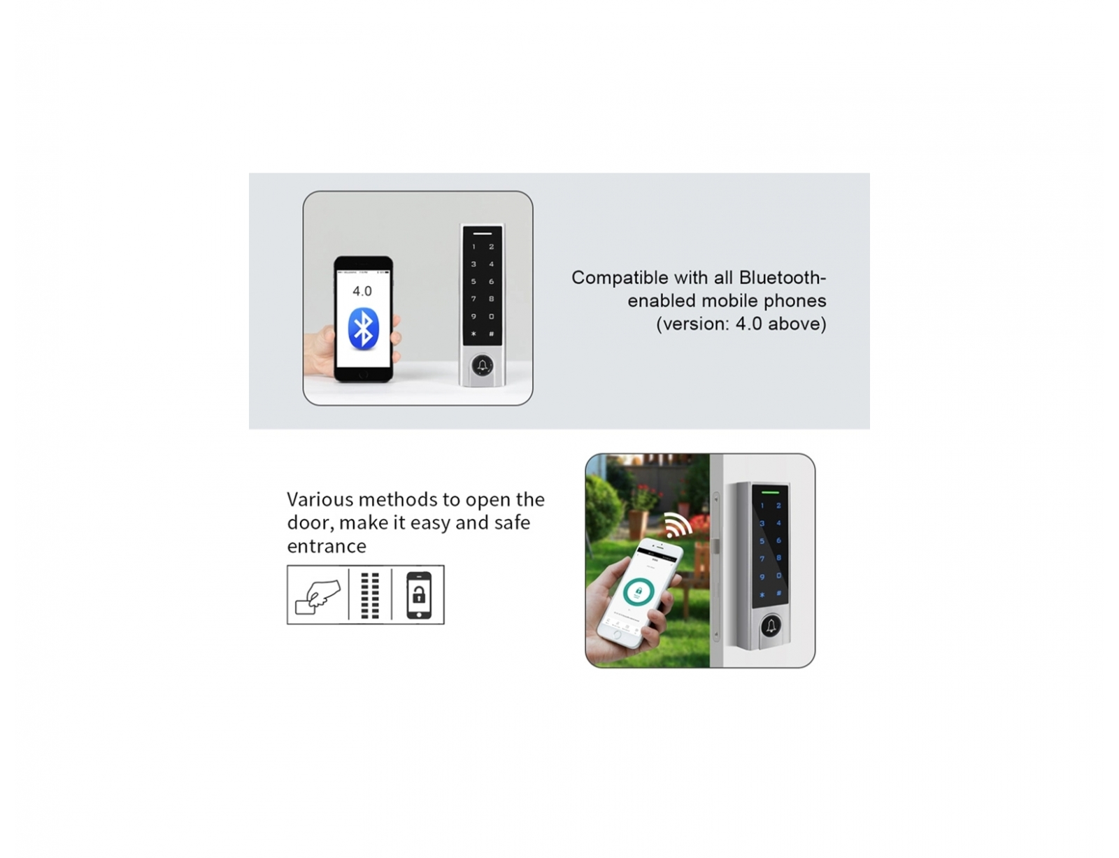 • Multiple Access Modes: Smartphone, Card, PIN